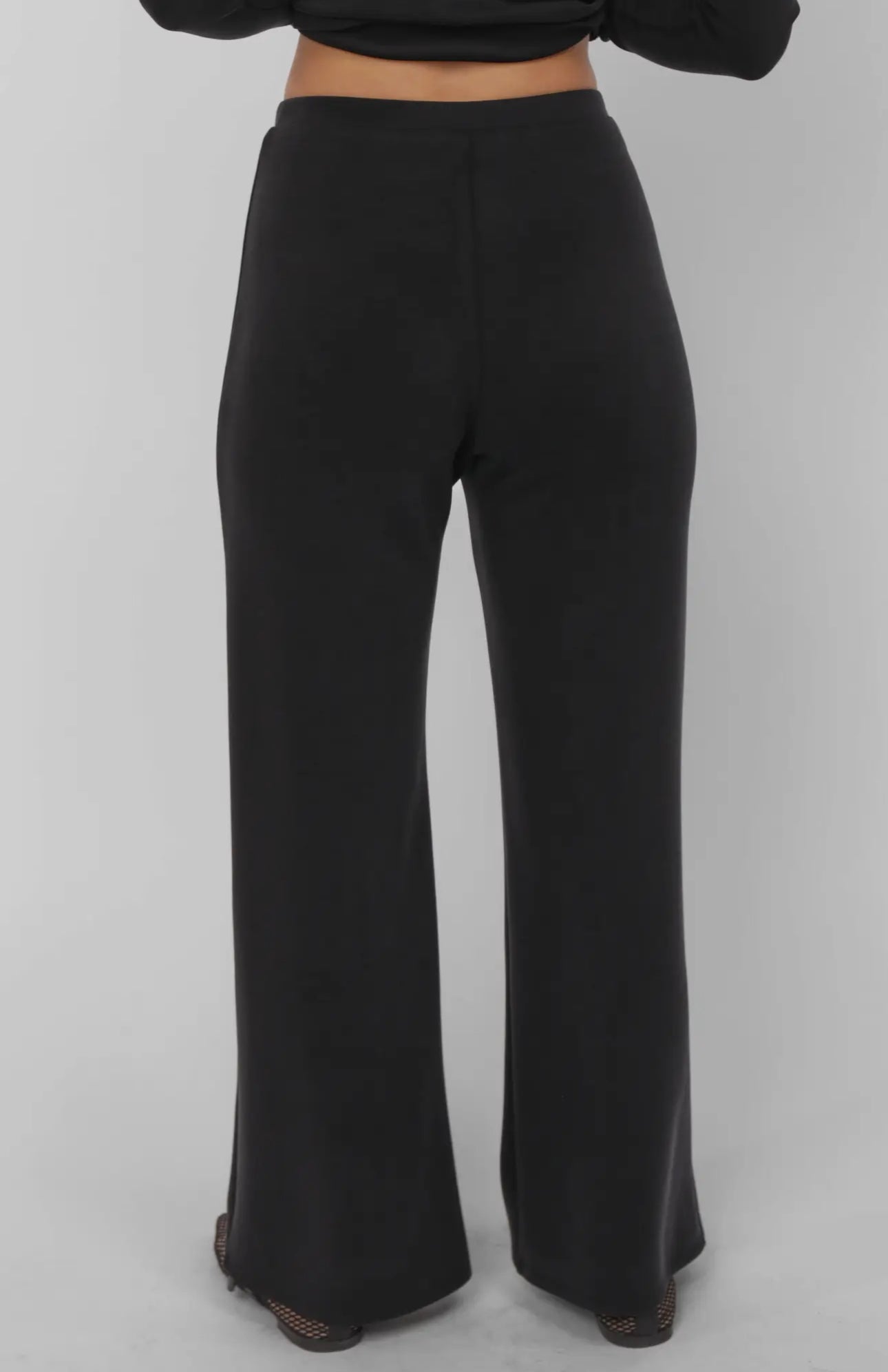Black Hustle Knit Wide Leg Pants 50% MODAL 47% POLYESTER 3% SPANDEX