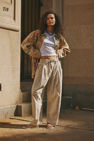 Free People Chamber Laid Back Pull on Pants Summer Sand