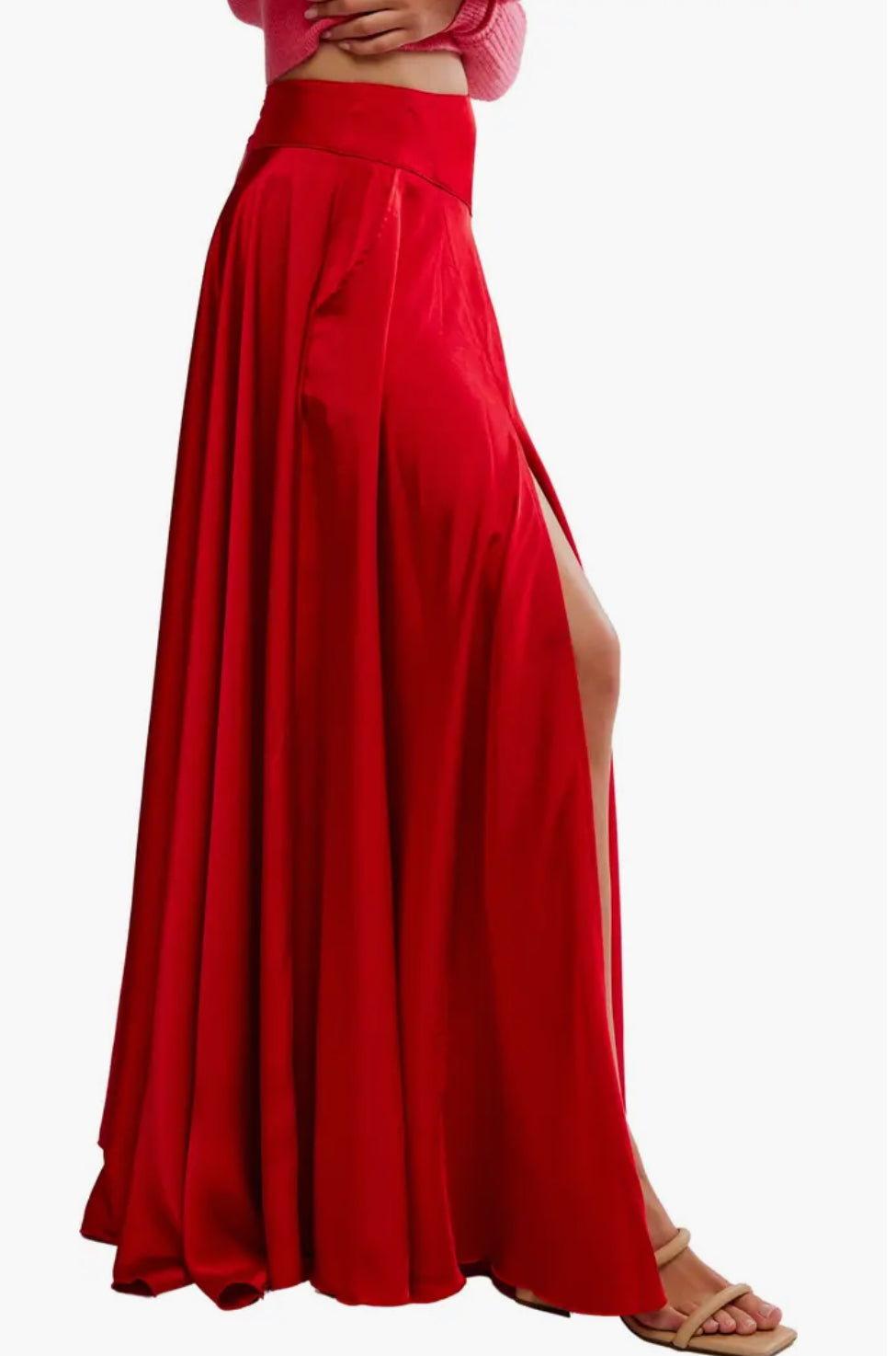 Stunning is an understatement for this satin maxi skirt, featured in a cascading A-line design with a pointed waistband for an extra elevated detail.