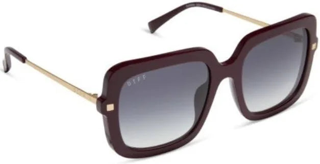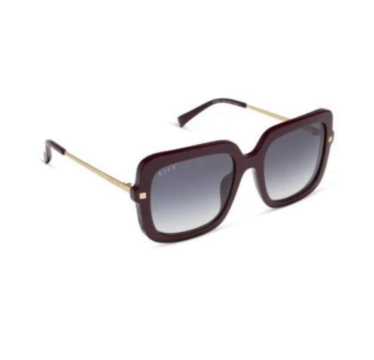 Shop DIFF Sandra Square Sunglasses in Dark Cherry Lacquer with Grey Gradient lenses at Pep & Punch—bold, versatile shades for elevated everyday style.