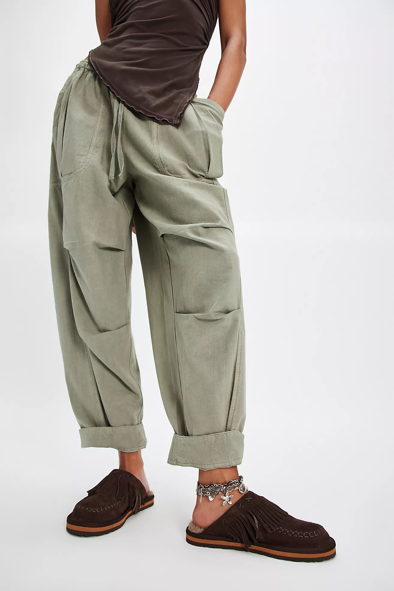 Slip into cushy comfort with these so cozy mules by FP Collection featuring fringe uppers for an elevated touch.