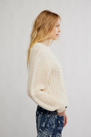A new take on a forever classic, this staple sweater is featured in a chunky knit fabrication with timeless cable detailing throughout for an added special touch. Fit: Relaxed, slouchy fitFeatures: Scoop neckline, ribbed hems, slouchy fitWhy...