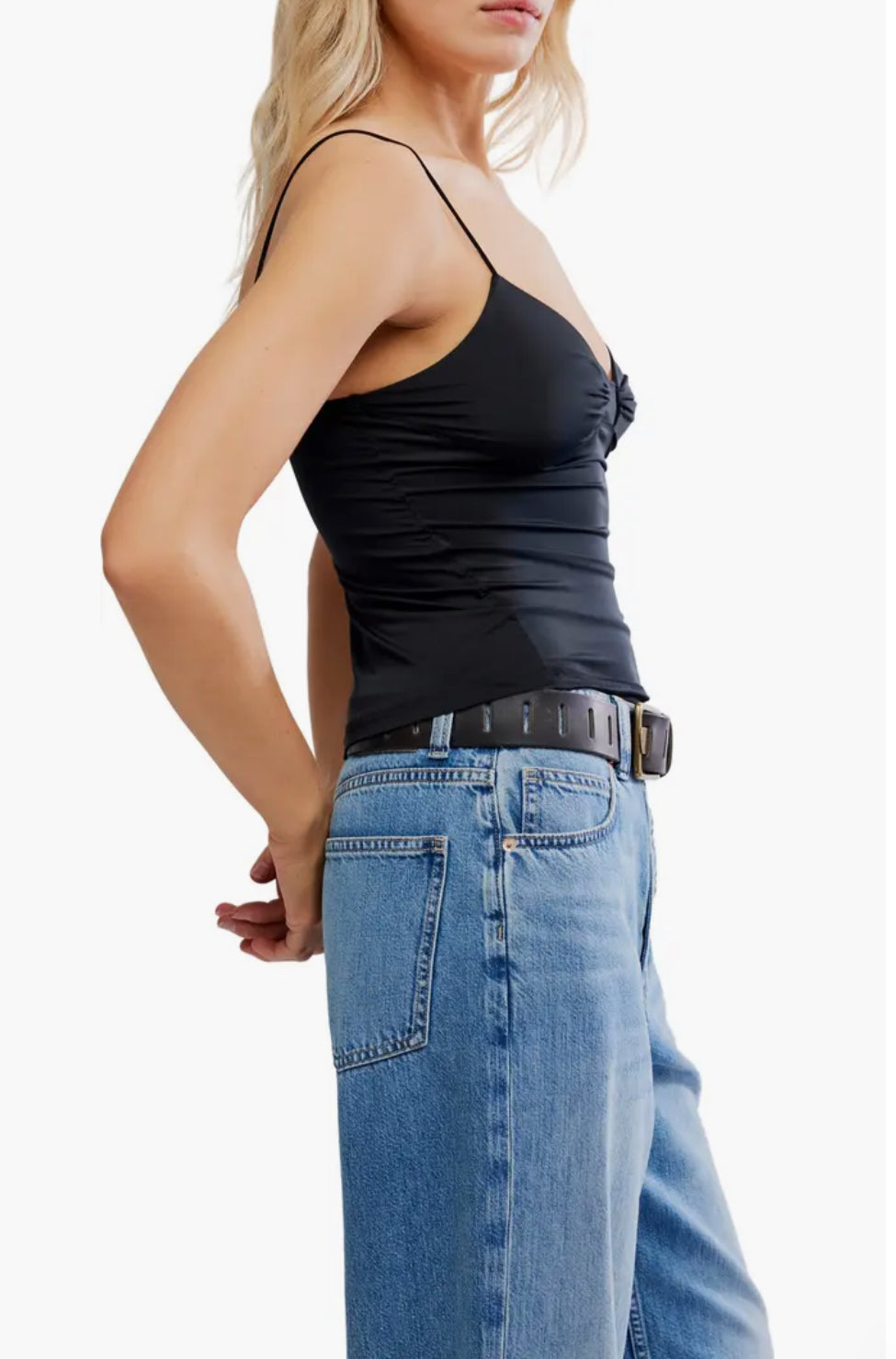 So essential in every way, this so-soft jersey cami features defined triangle cups with intentional ruching for the perfect flattering fit. V-neckline Fixed spaghetti straps Hip length Intimately Our softest intimates and best-ever base layers....