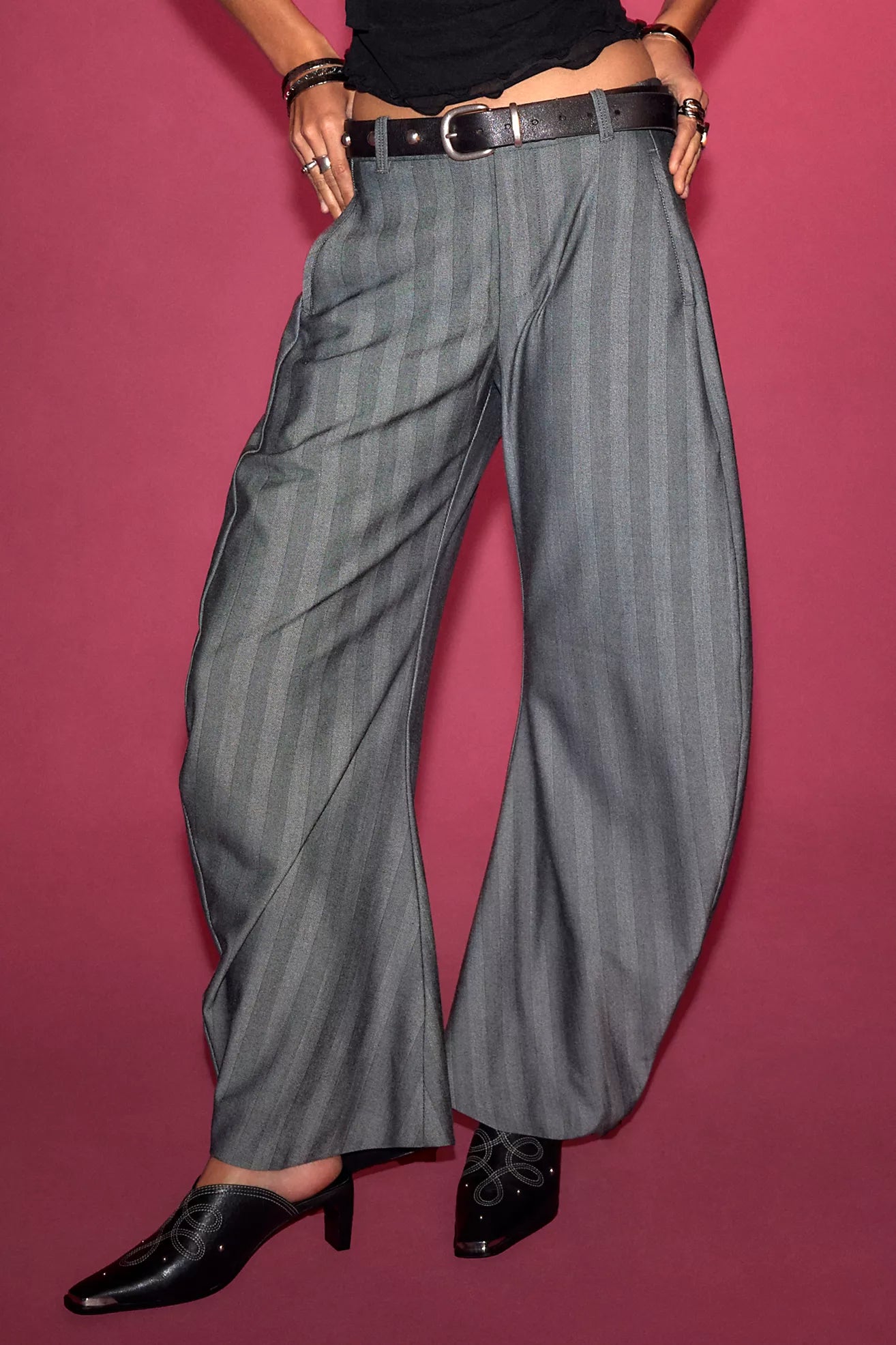 Free People Roxi Metal Tip Mule Black Leather