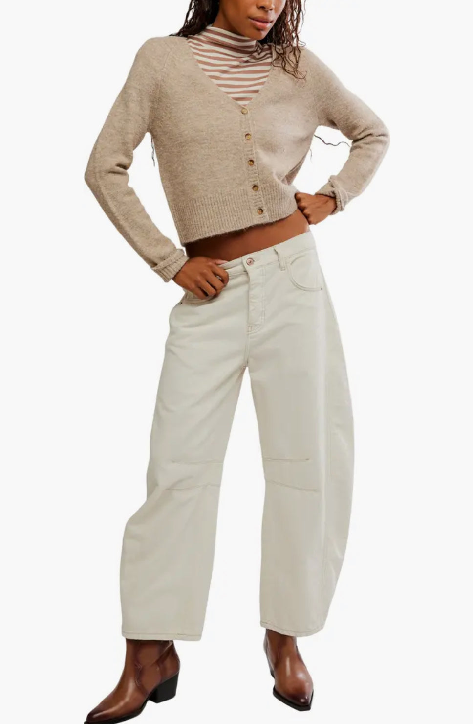 Free People School Girl Cardi Feather Grey Melange Taupe