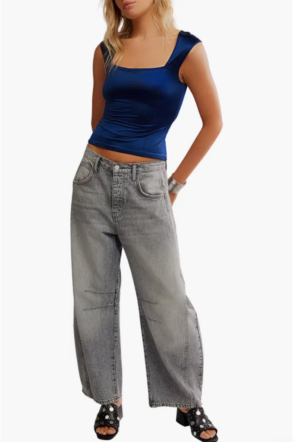 This figure-hugging top is designed to make a statement with its lustrous nylon knit fabrication and a flirty cutout back. Square neck Sleeveless 82% nylon, 18% spandex Hand wash, dry flat