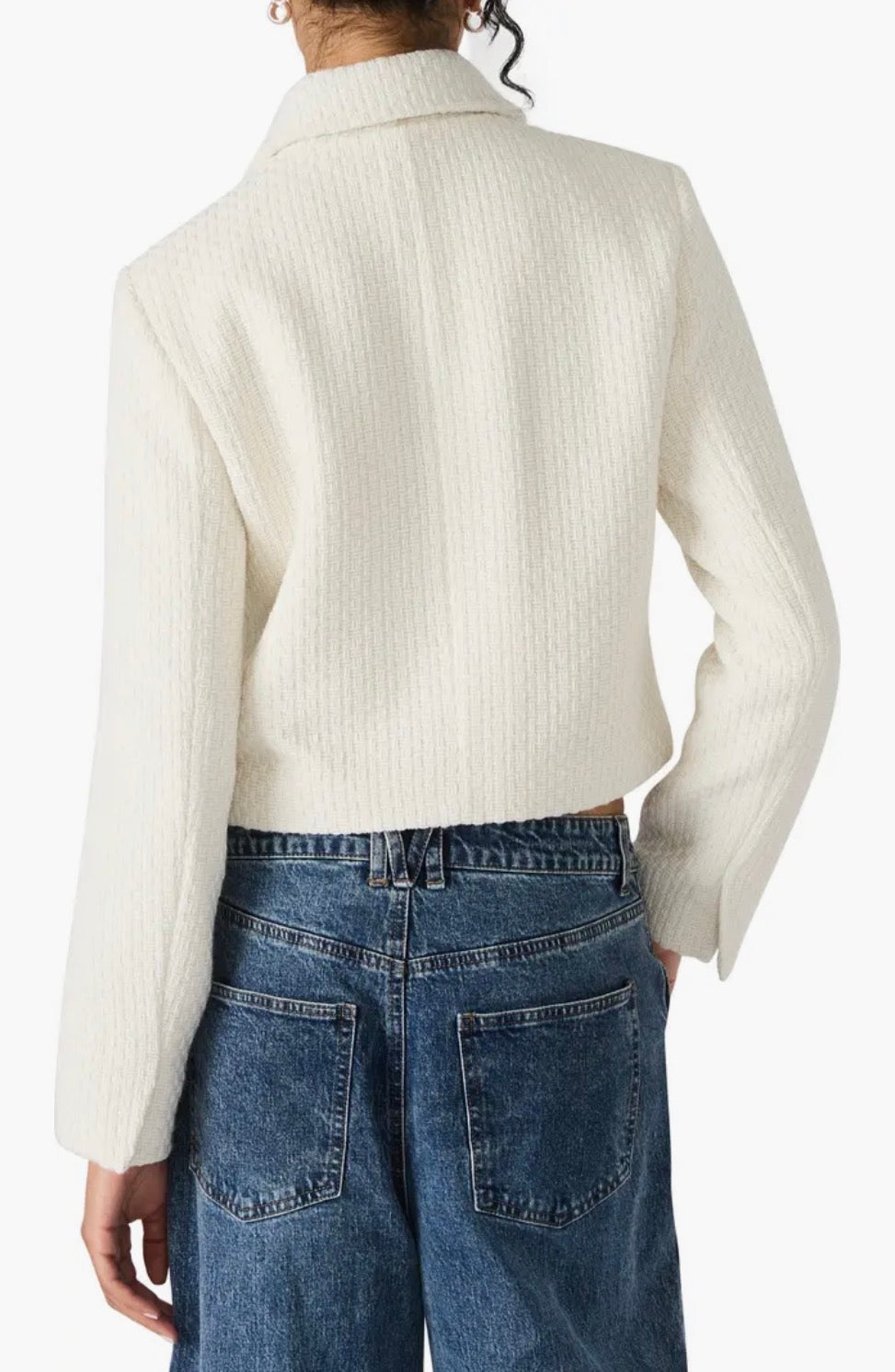 Soft and slightly structured, this textured-knit jacket features polished details and a modern cropped silhouette.