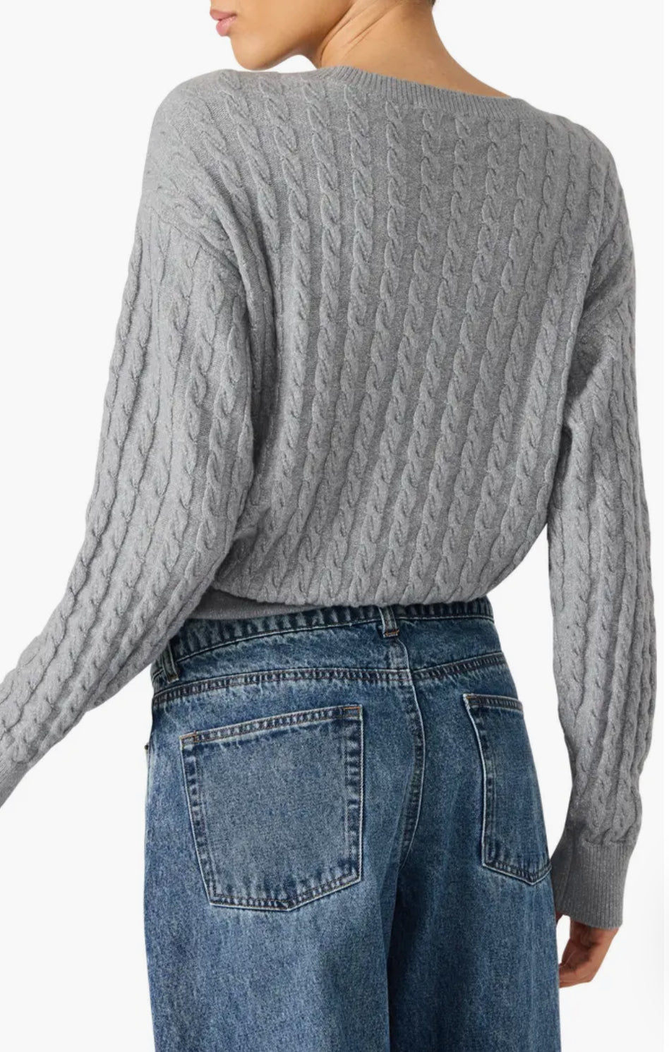 Dropped shoulders enhance the relaxed fit of this cropped sweater textured with cozy cable stitching.
