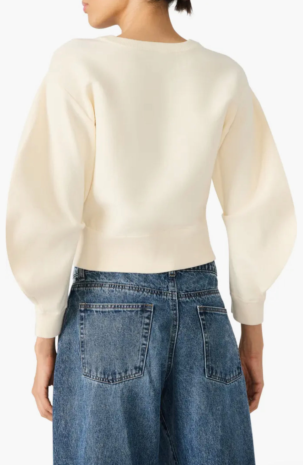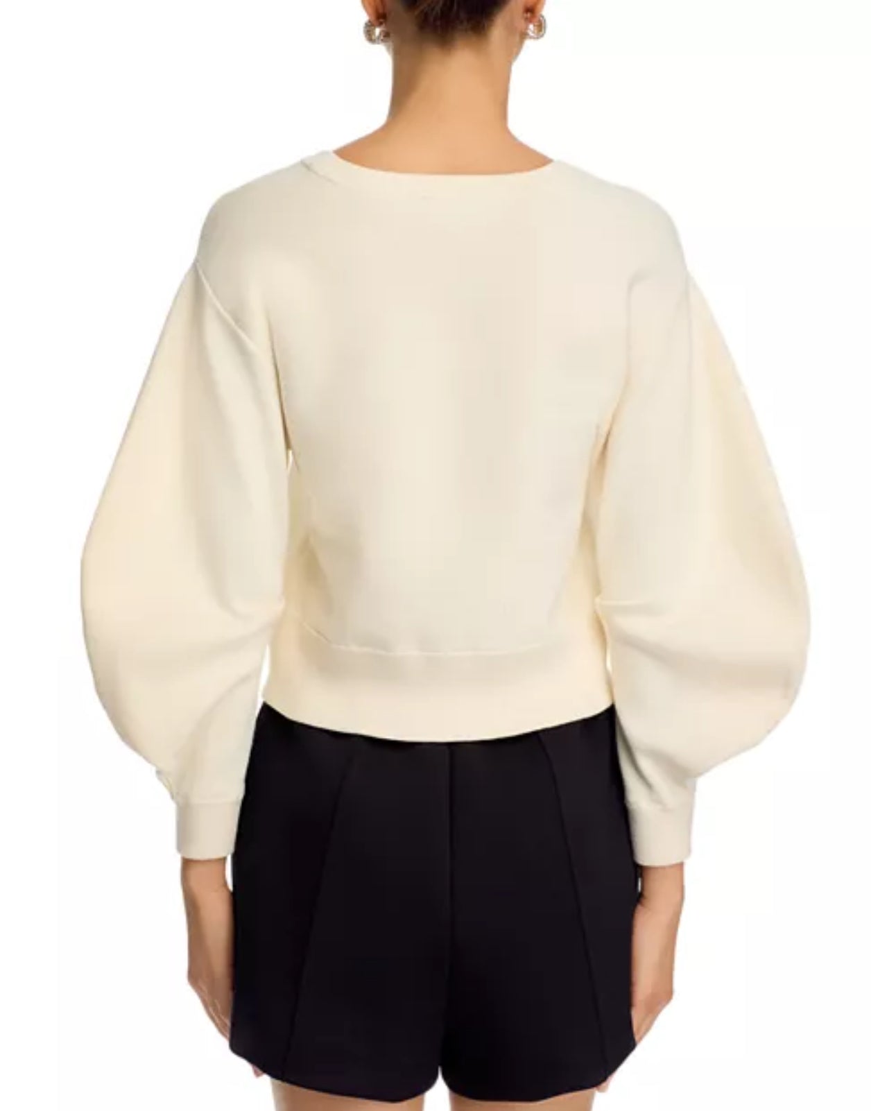 - Long balloon sleeves, ribbed cuffs