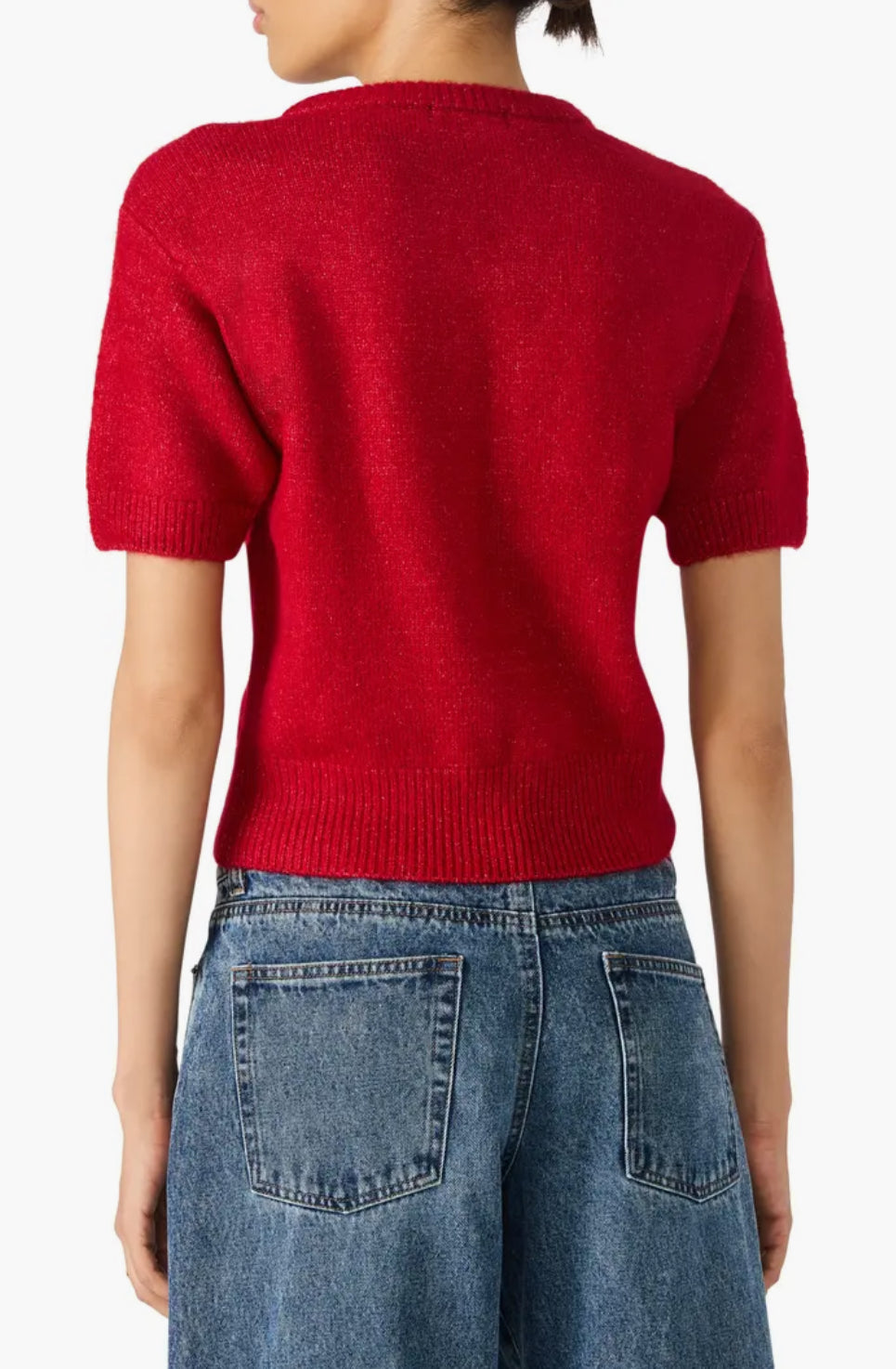 Dainty ties tether the open front of this close-fitting cardigan knit in a cool cropped fit. 20 1/2" length Ties at front Crewneck Short sleeves 68% acrylic, 28% polyester, 4% spandex Hand wash, dry flat...