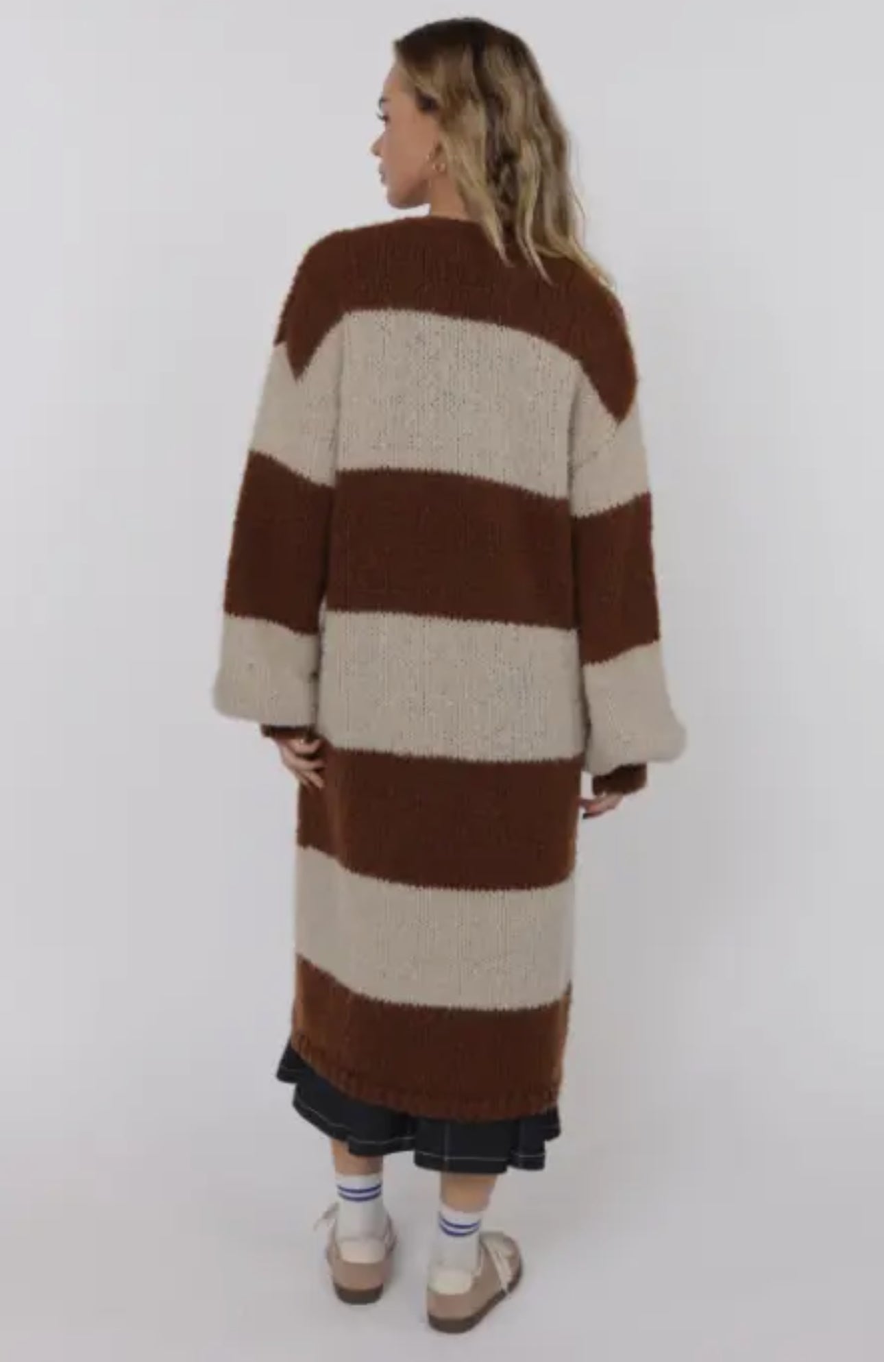 Brown Camel Suki Bubble Sleeve Wide Stripe Duster Cardigan
