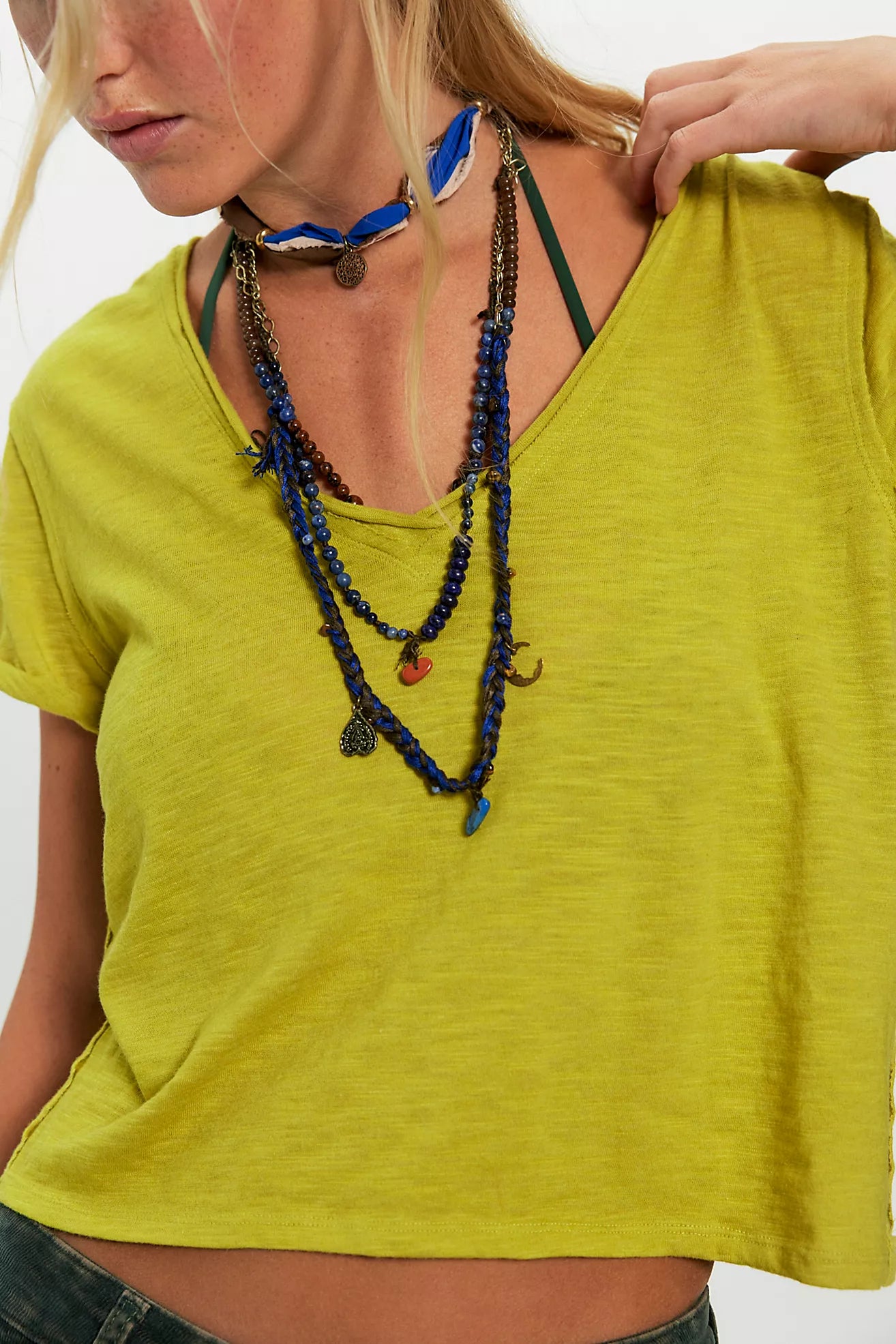 Perfect for layering, this short-sleeved tee from We The Free is featured in a boxy cut and a V-neckline for endless outfitting potential. Fit: Relaxed, cropped, boxyFeatures: Comfy jersey fabrication, V-neckline, dropped short sleeves with tacked cuffWhy We ❤...