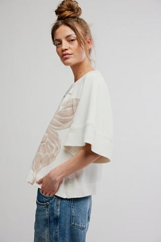 Add a touch of charm to your ensemble with this playful pullover, featuring a soft cotton fabrication, a boxy, slightly cropped silhouette, and a whimsical graphic design. Crew neckline Raglan, short sleeves Ribbed, knit trim...