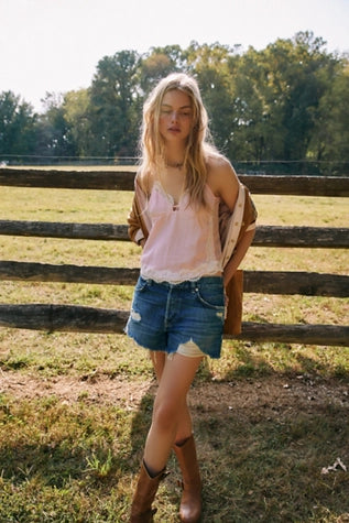 A true forever staple from our We The Free collection, these denim shorts will be your go-to for seasons to come. Fit: Mid-rise, relaxed silhouetteFeatures: Zip fly and button closure, five-pocket design, distressing & fraying throughout, soft...